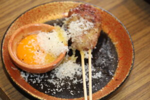 「サカバダ アレグロ」の「自家製ソーセージサルシッチャ(月見チーズタレ)」(500円、平日限定)