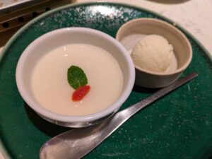 コースの最後を飾るのは「杏仁豆腐&生姜のミルクアイス」。甘さを抑えた杏仁豆腐はなめらかで上品、そして生姜の香りが鼻をくすぐるミルクアイスは、爽やかな後味を残します。薬膳の流儀を最後まで貫いた、心憎い締め方でしょう。