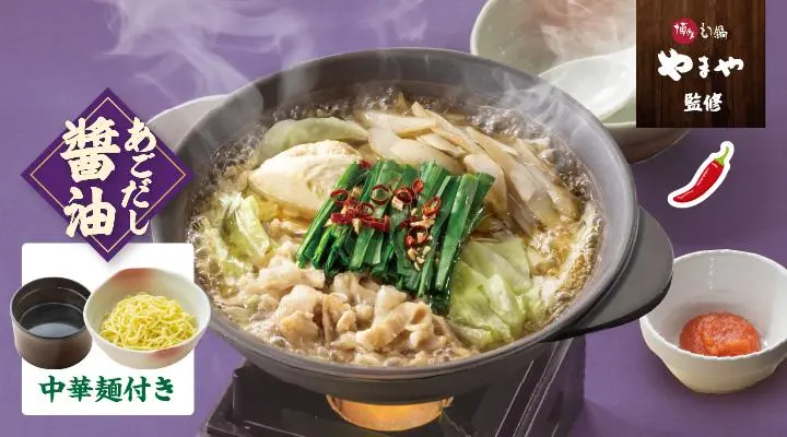 “あごだし醤油”と“こく味噌”の2つの味があり、もつの量は1.5倍も選べます。