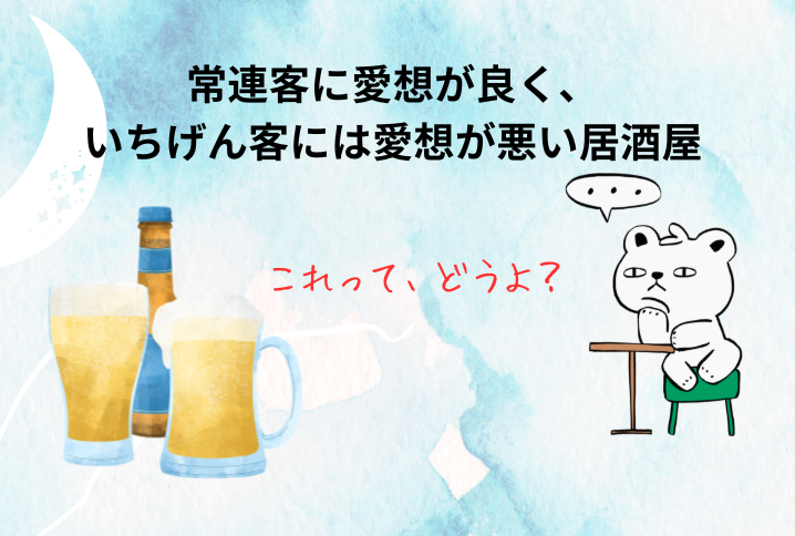 常連客に愛想が良く、いちげん客には愛想が悪い居酒屋、これどうよ?
