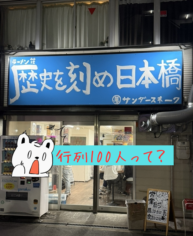 「ラーメン荘歴史を刻め日本橋店」行列100人って?次郎系ラーメン