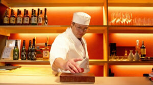 元エンジニア、剣道有段者という異色の経歴を持つ。「職人になる」という夢を諦めきれず、予約困難店「鮨大和」に弟子入り。「本格鮨を親しみやすく」という想いを胸に、北新地での独立を決意。