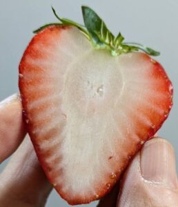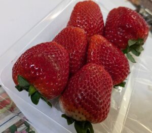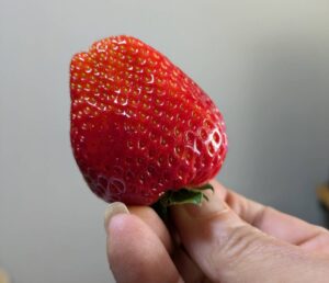 大粒のいちごで、二つに割った断面がハート型だし、美味しそうで食べてみたくなっちゃいましたね。