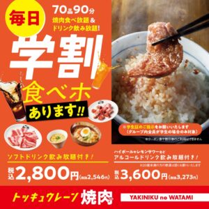 ワタミカルビも!『食べホ スペシャル』4928円(税込) 90分★小学生半額以下★幼児以下無料