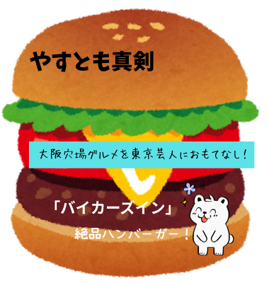 「やすとも真剣」東京芸人トータルテンボスおもてなしで登場「バイカーズイン」の絶品ハンバーガー
