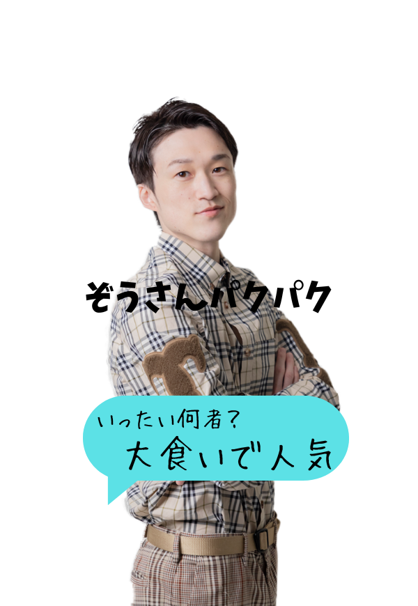 ぞうさんが掲げるビジョンは「『食べる幸せ』で笑顔になる世界、大食いという文化を変える」というもの。大食いをただの「大量消費」としてではなく、食そのものの楽しさ・美味しさ・幸せを伝える文化として昇華させたいという想いが、彼の活動全体に貫かれています。